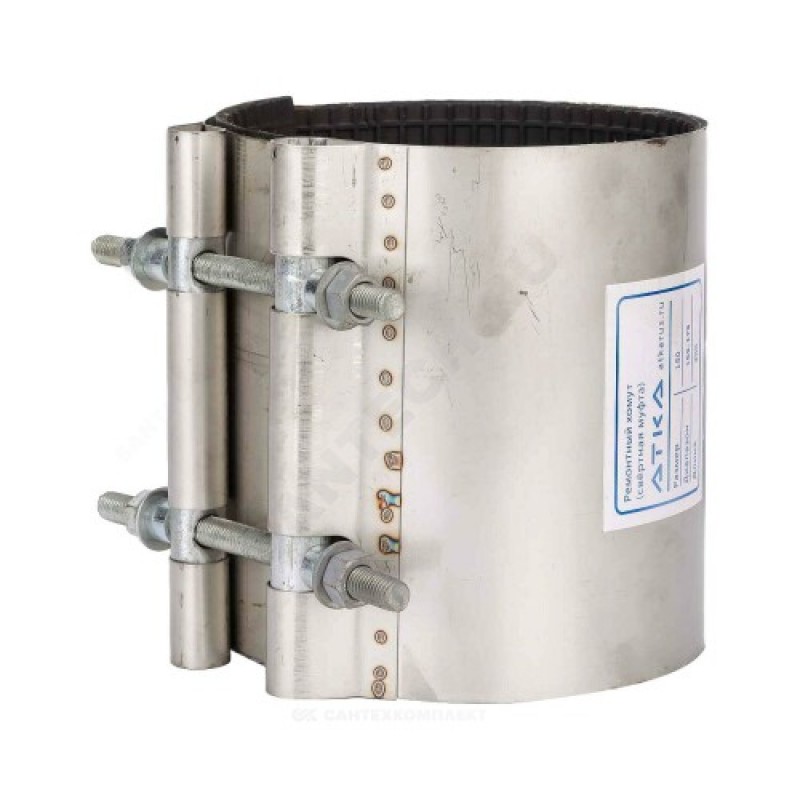 | Область применения | Предназначен для ликвидации течей в водопроводных трубах, а также для соединения гладких концов стальных, чугунных и полиэтиленовых труб одинакового диаметра. |