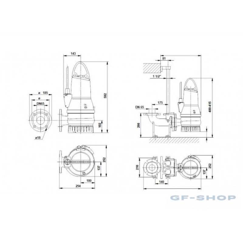 Насос является погружным насосом, изготовленным из чугуна, со встроенным погружным взрывозащищённым 1-фазным электродвигателем. Сертификаты: LGA, ATEX