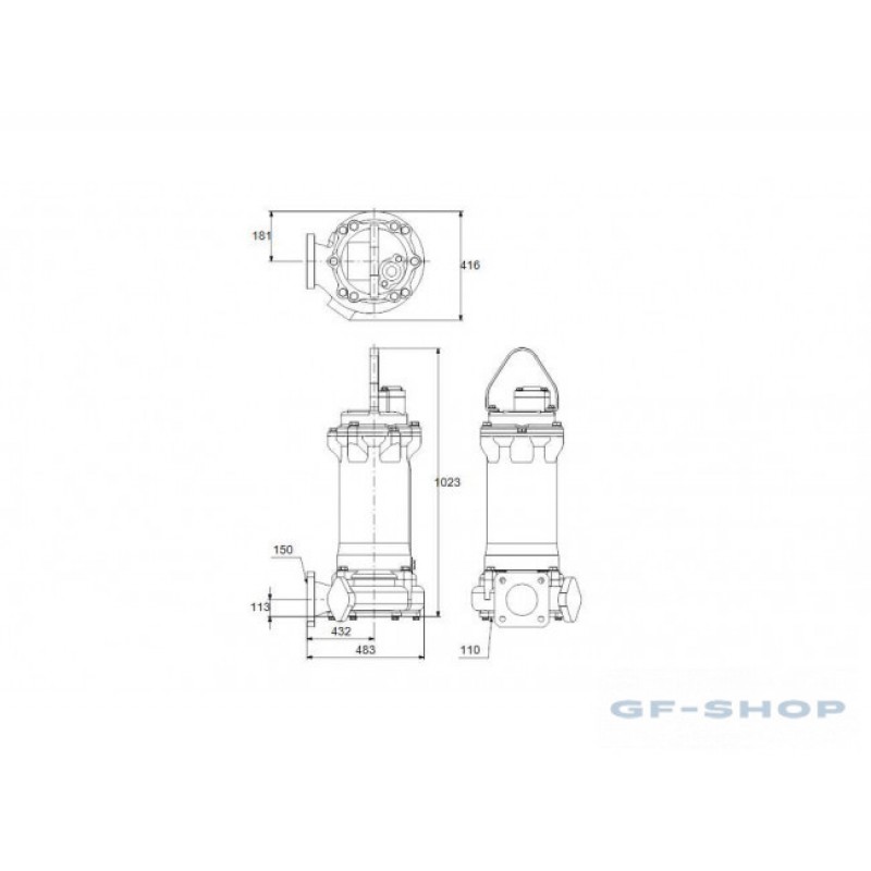 Насос выполнен из чугуна, имеет боковой напорный патрубок и оснащен встроенным погружным трехфазным закрытым электродвигателем, имеющим класс изоляции F (155°C).
