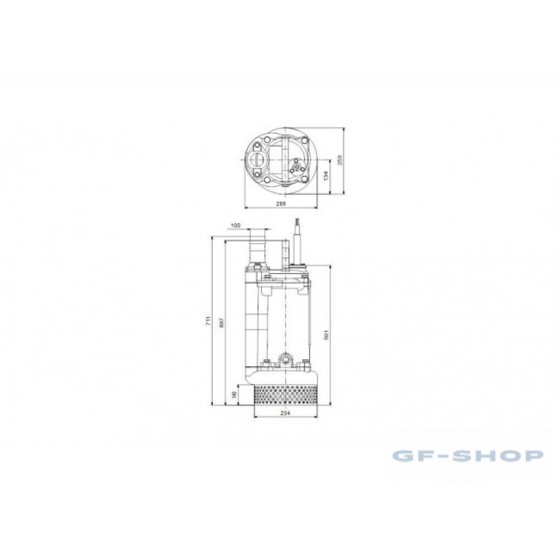 Насос выполнен из чугуна, имеет вертикальный напорный канал и оснащен встроенным погружным трехфазным закрытым электродвигателем, имеющим класс изоляции F (155°C).