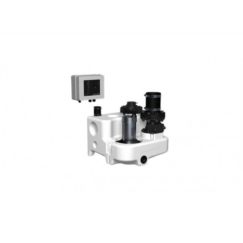 Канализационная насосная установка Grundfos MSS.11.3.2 Multilift поставляется полностью готовой к установке, состоит из полностью резервуара с насосом и погружного электродвигателя, обратного клапана, адаптера с гибким штуцером DN100 установленным на резервуар и контроллера вкл. датчик уровня. Полностью герметичный резервуар обладает всеми необходимыми патрубками для подключения впускной трубы от 180 до 250 мм, вентиляционной трубы DN50 и ручного мембранного насоса (принадлежность).Сборный резервуар содержит 7 входных патрубков по периметру. Выходной патрубок 2x DN100 с одним уплотнениtv, гнездо для входа по бокам 2 х DN100, DN100 верхний подвод воды. 2x DN50 сверху и сбоку. Multilift на подвержен коррозии, а также герметичный и осадок на дне минимальный. Насос с вихревым рабочим колесом типа Vortex и погружными электродвигателями,имеет безопасную масляная камера для заливки масла между двумя уплотнениями вала.LC220 контроллер с микропроцессором оснащен дисплеем для полной возможности мониторинга. Насос и датчик подключен к контроллеру с 4 м или 10 м кабеля и длины трубы. Кабель питания 1,5 м с вилкой (с фазоинвертором для 3-х фазный двигатель). Бесконтактные, пьезо-резистивный датчик давления подключаемый внутри шкафа, контролируется контроллером, с точностью до миллиметра и отображается на дисплее. Контроллер полностью контролирует работу насоса