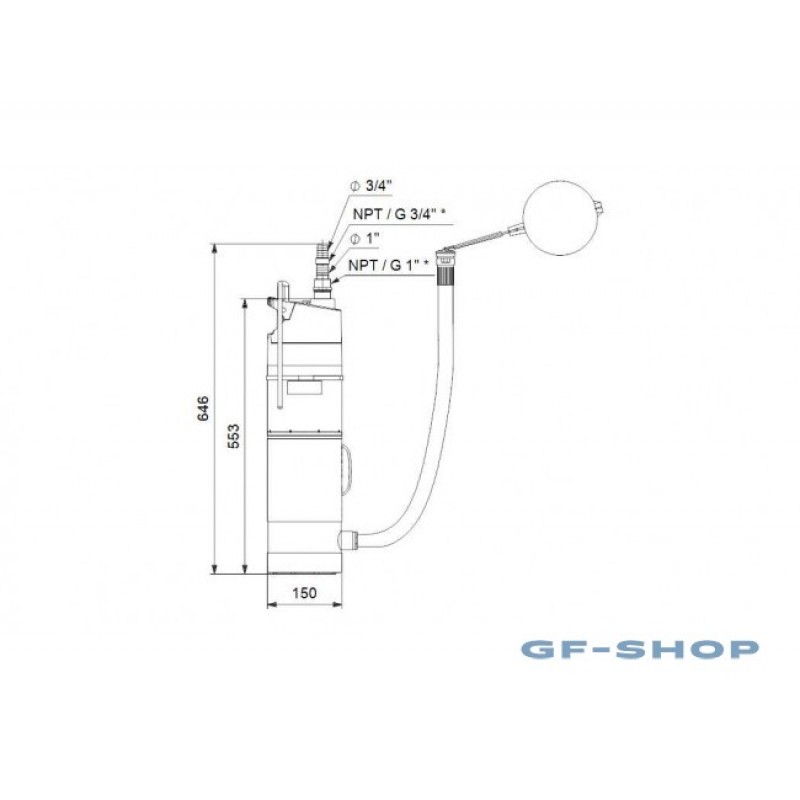 AW – с поплавковым выключателем и всасывающим шлангом с поплавком и фильтром.