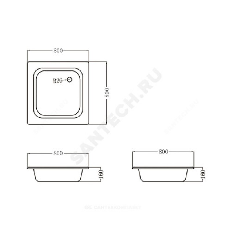| Размер поддона, мм | 800х800х160 |