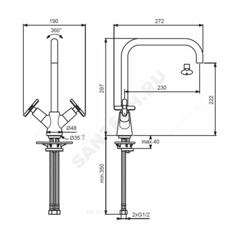 | Вращение излива | поворотный |