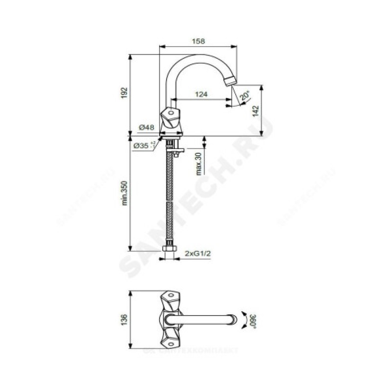 | Тип подводки | гибкая подводка |