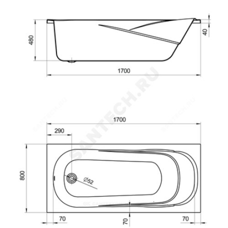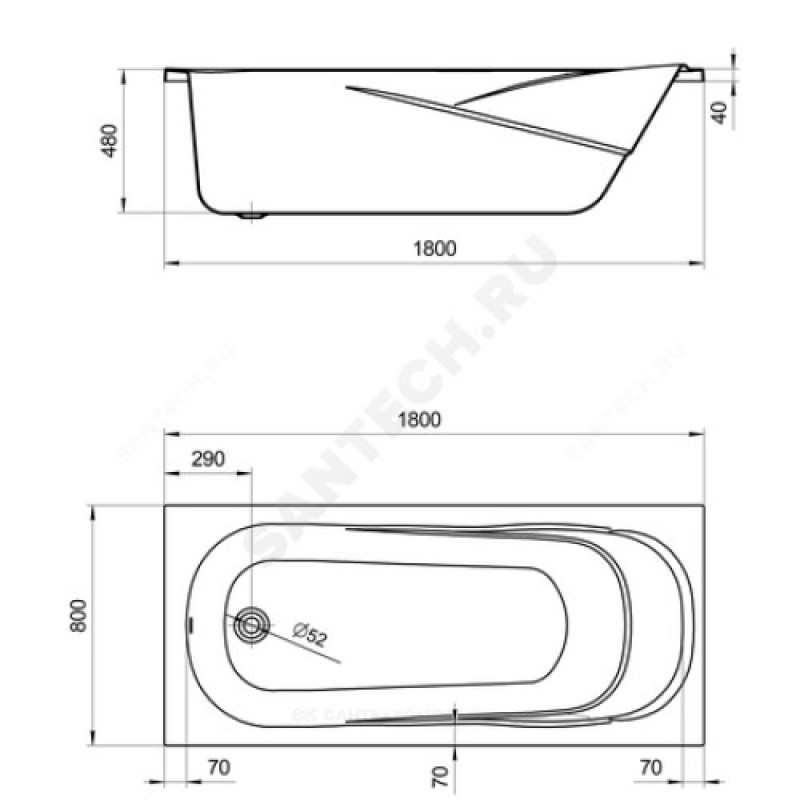 | Диаметр сливного отверстия, мм | 52 |