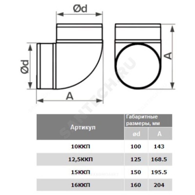 | Наименование производителя | Колено пластик 90° , D125 |