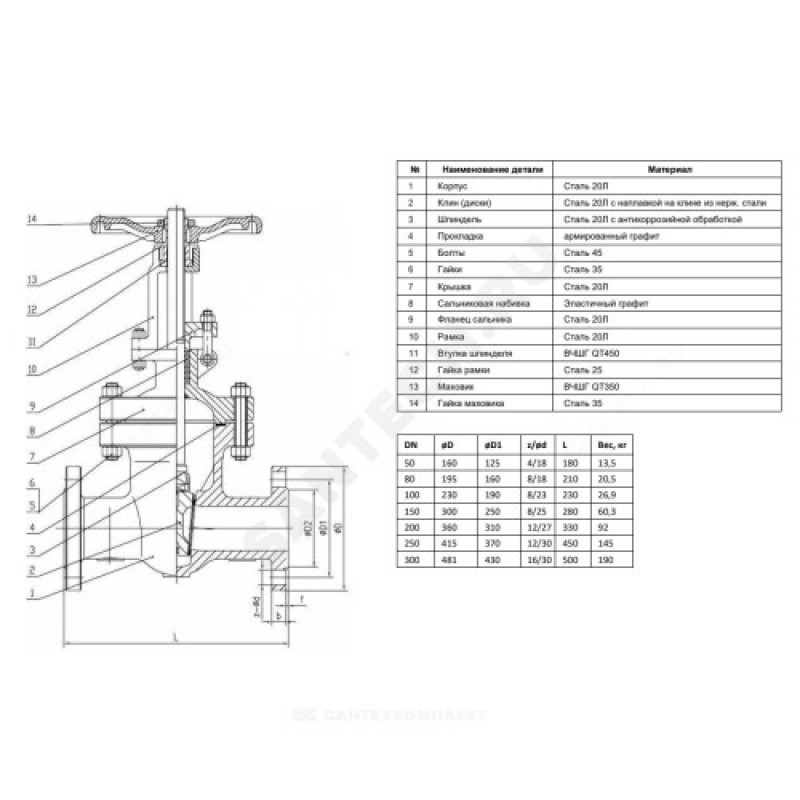 - Артикул:Задвижка клиновая сталь 30с64нж Ду 200 Ру25 фл